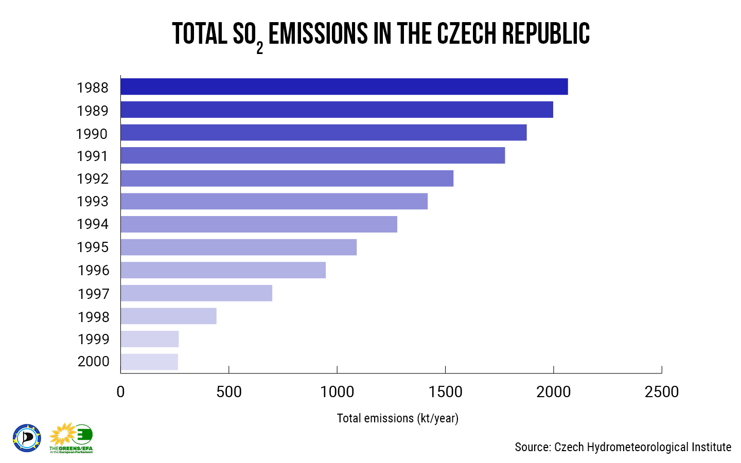 You may remember this term from the 1990s, when air pollution was a big issue in our country. Especially in the Moravian-Silesian and Ústí nad Labem Region, there were so many pollutants in the air (sulphur dioxide, benzopyrene and particulates such as dust and ash) that as well as increasing the incidence of asthma and cancer, it led to children being born sick. The Teplice programme showed that many more babies with low birth weight and respiratory diseases were born in places with high concentrations of pollutants in the air than in regions with healthier air. Because of bad air, polluted by aggressive industrial production, hundreds of thousands of people have never known what it is like to live a healthy life without problems – let alone their families and loved ones.