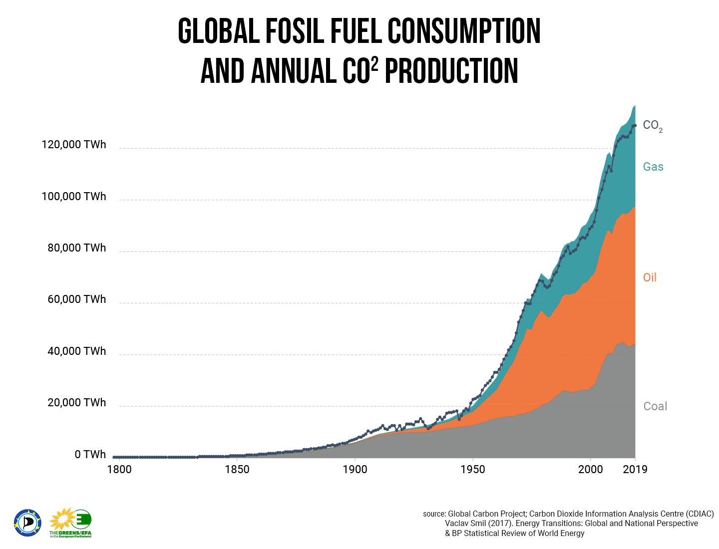 Does this remind you of the pandemic curve? Yes, fossil fuel-based production has also spread organically across the planet in the last century. For a long time, there was no other way to increase production and improve people’s living standards. In a way, the fossil fuel industry had monopoly on wealth. Technologies for production, transport or energy with minimal CO2 emissions only started to develop from the 1960s onwards. It is only since the 1980s that the UN has been concerned with emissions. And in the meantime, the temperature has been rising (it is no coincidence that this graph has the same evolutionary dynamics as the evolution of emissions).