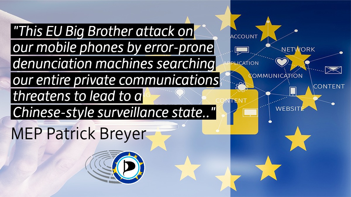 “This EU Big Brother attack on our mobile phones by error-prone denunciation machines searching our entire private communications threatens to lead to a Chinese-style surveillance state. Will the next step will be for the post office to open and scan all letters? Indiscriminately searching all correspondence violated fundamental rights and is the wrong approach to protecting children. It actually puts their private pictures at risk of falling into the wrong hands and criminalises children in many cases. Flooding overburdened law enforcement officers, who don’t even have time to sift through already known child pornography, with mostly false machine-generated reports is irresponsible with regard to the victims of ongoing abuse.”