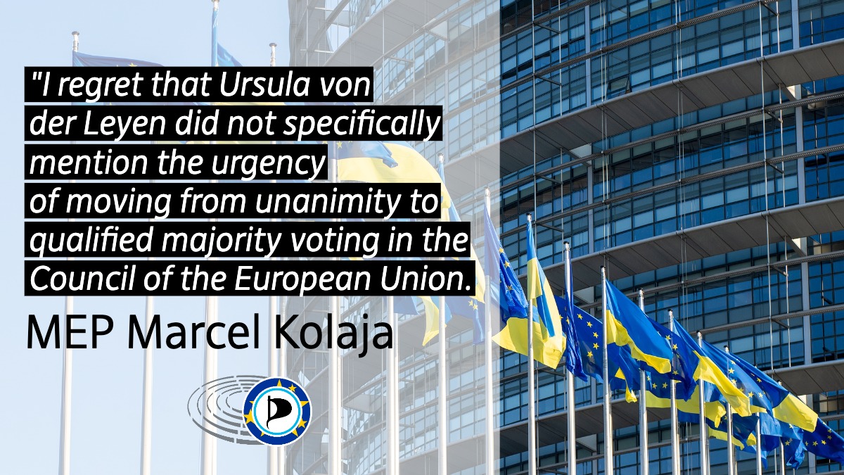 Strasbourg, 14/09/2022 – Today, Ursula von der Leyen, President of the European Commission, delivered her annual speech on the state of the European Union in Strasbourg. While Pirate Party Members of the European Parliament welcome a European solution on energy security and a united tough stance on Russia, von der Leyen fails to emphasize the importance of majority voting in the Council of the European Union in her call for a European Convention.